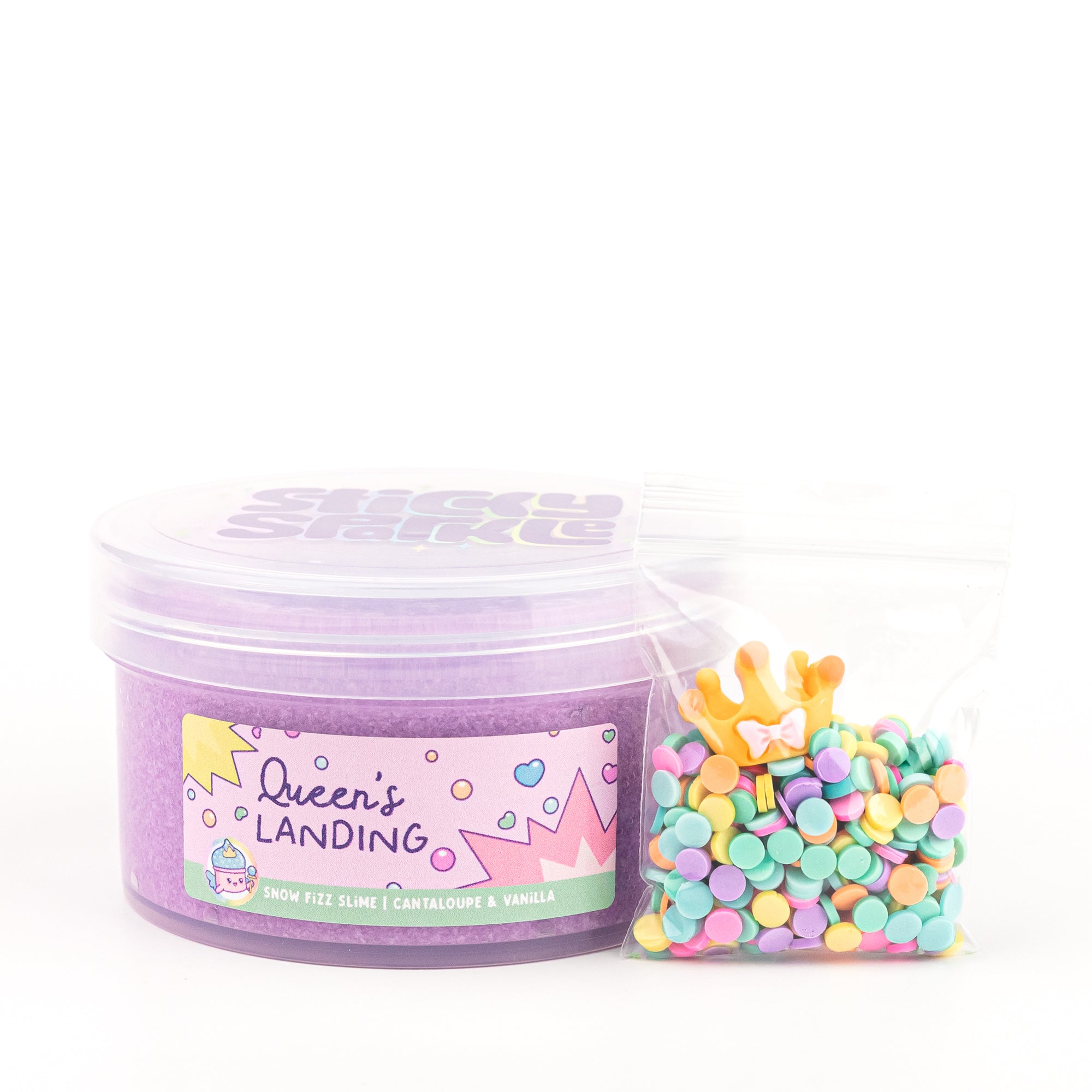 When the Slimeship finally crash-landed on Earth, it didn’t go quietly — it popped! Colorful beads flew everywhere, and the air was filled with a fizzy burst of magic. Queen's Landing captures that explosive arrival with a crunchy slime of vibrant beads and a bold, delicious scent of cantaloupe and vanilla. It’s loud, fun, and full of that first-splash-of-earth excitement.