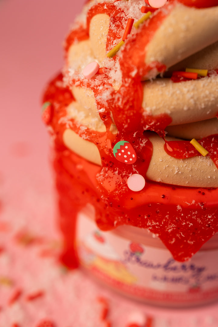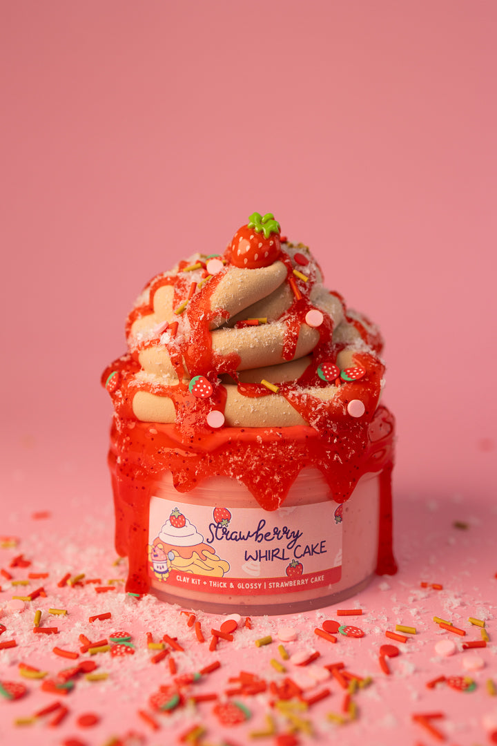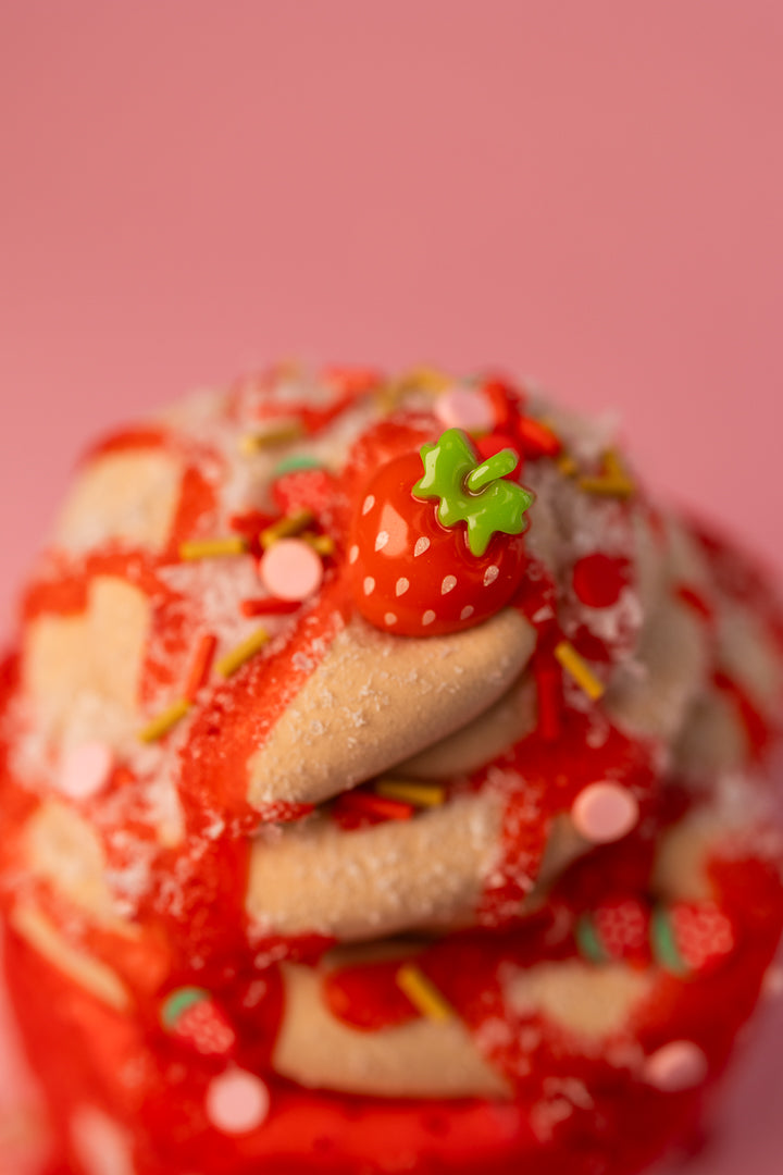 Step right into the sweetest tent at the carnival! This DIY masterpiece starts with a thick & glossy pink base, comes topped with a handmade clay funnel cake swirl, and includes a 1 oz clear red slime "strawberry syrup" to drizzle on top. Mix it all together for a buttery, soft texture and a swirl of strawberry goodness. It’s like making your own carnival treat, but way more fun to squish!