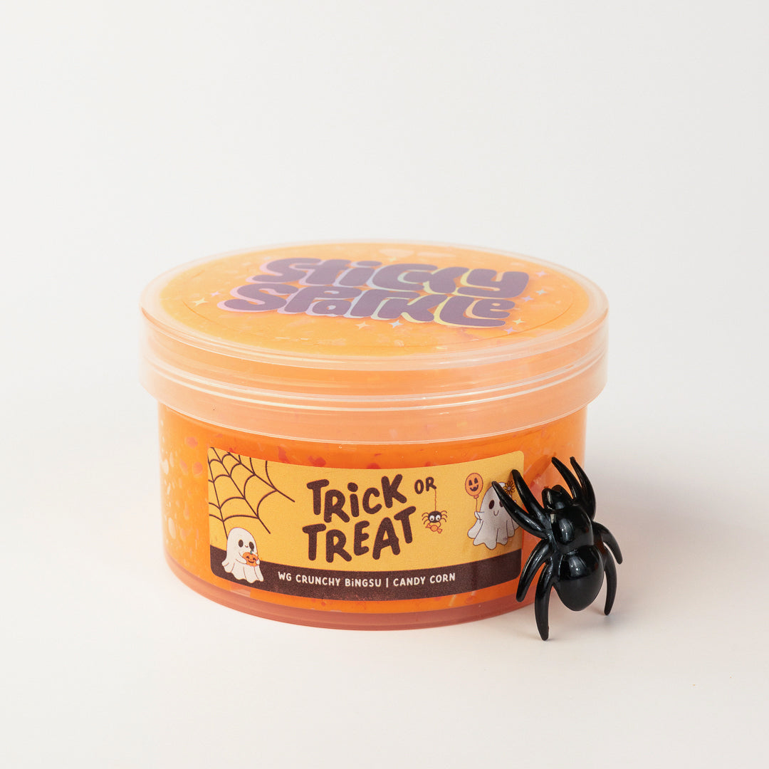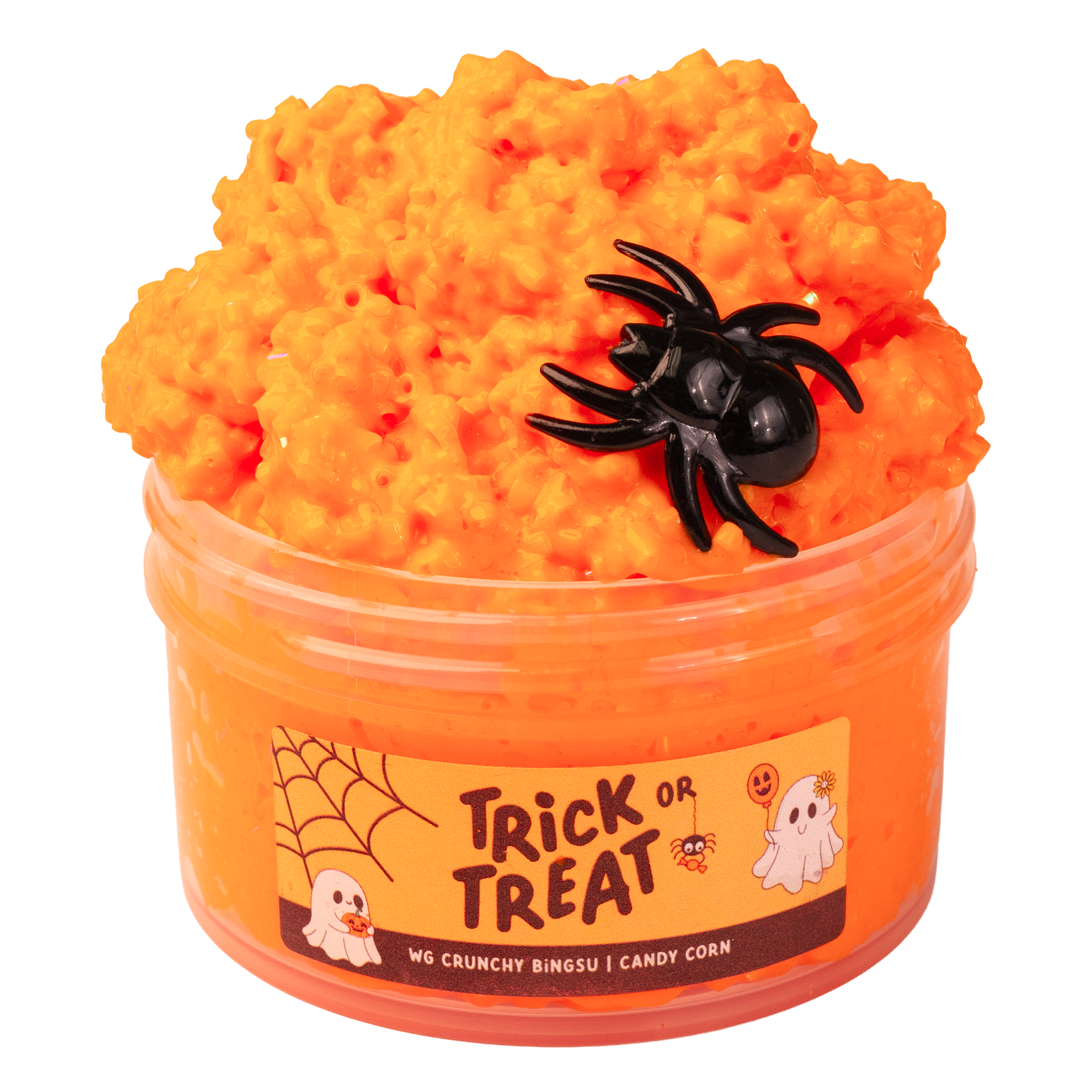 This white glue bingsu slime is packed with that signature crispy crunch everyone loves, making every poke and squish so satisfying. Infused with the sweet and nostalgic scent of candy corn, it’s like Halloween night in a jar.